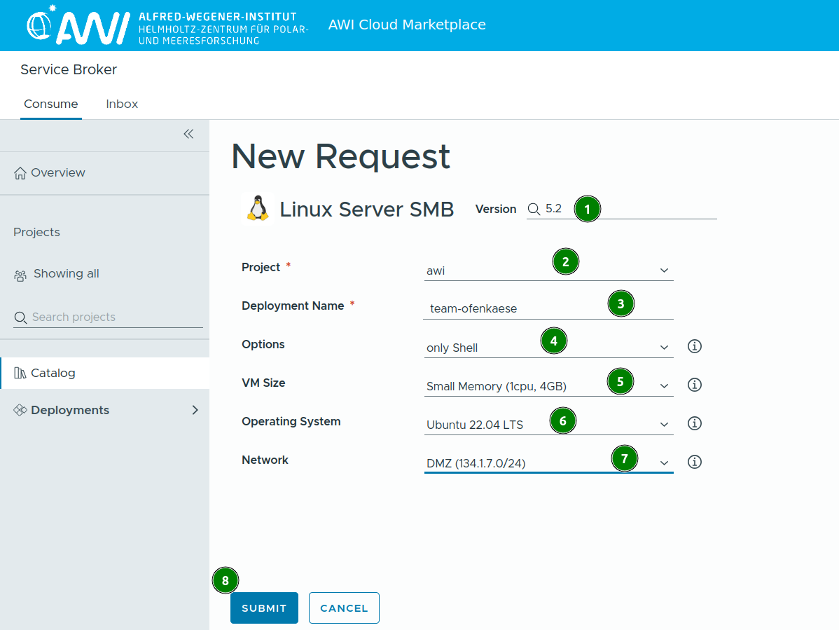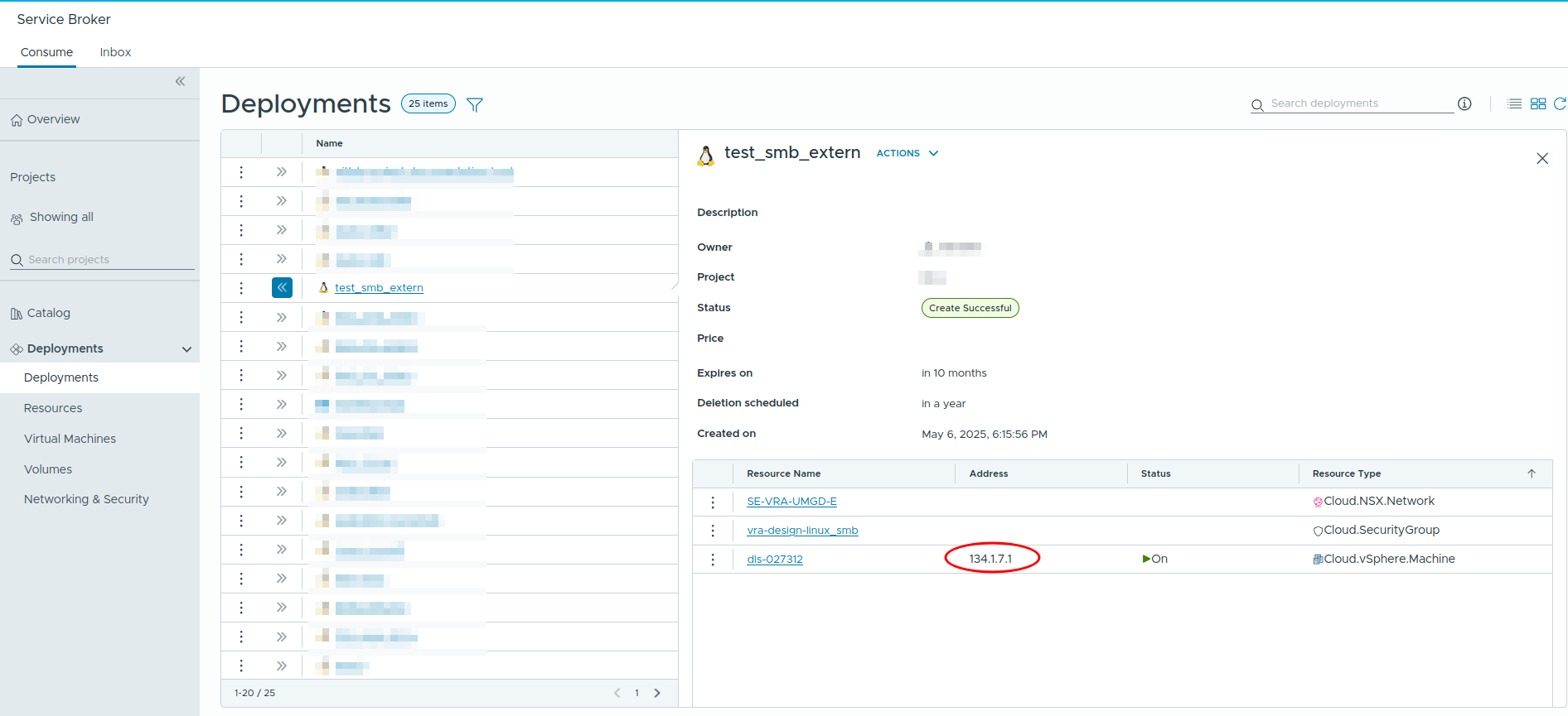 Request a virtual machine from the blueprint Linux Server SMB. The naming might change in the future, at least it should be capable i) to apply
